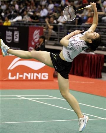 2009 China Masters Badminton - Wang Shixian jump shot.